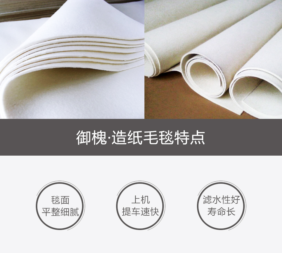 車速:80-250m/min 可選用品種: BOM 1+1;1+2疊層毯 脫水性好,尺寸規(guī)格穩(wěn)定、抗污、耐磨性能強(qiáng),使用壽命長。克重950—1400g/㎡